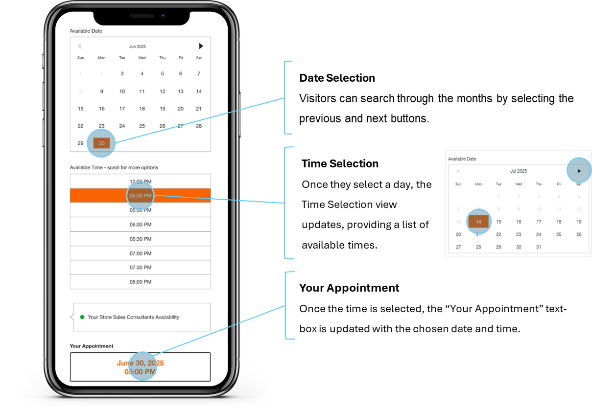 When scheduling an in-home consultation, users rely on calendar components within service lead forms to select a convenient day and time. However, inconsistencies across pages and layouts have made this step confusing and inefficient, contributing to increased form drop-off rates. To explore potential improvements, I led a usability testing study, supported by the UX research team, focused on three calendar component variations: two customer-facing and one associate-facing.